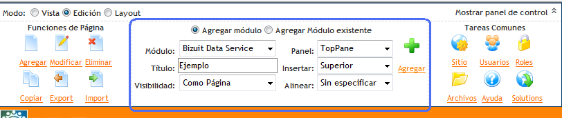 Para agregar un nuevo módulo a la página en la que nos encontremos deberemos: