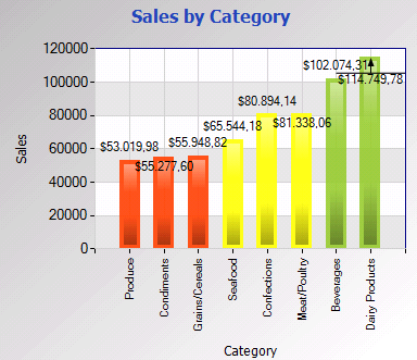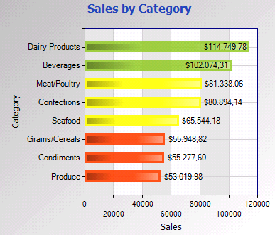 La categoría de gráficos "Bars and columns" provee dos tipos de gráficos: "Bars" y "Columns"