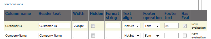 Presionando el link "Ok" se cierra la ventana de configuración de evaluaciones y se indica que la columna está siendo evaluada mediante la selección de la opción "Has Eval":