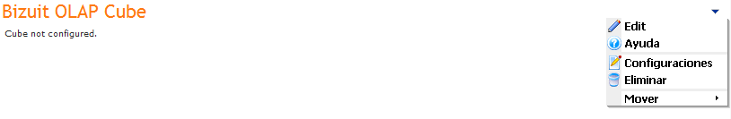 Se presentará la ventana de configuración del módulo, la cual solicita/muestra el nombre del cubo a crear o editar y presenta un conjunto de pestañas de configuración como se indica a continuación: