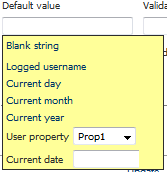 Permite determinar el valor por defecto del parámetro. Es posible especificar un valor por defecto ingresado manualmente o seleccionar una valor predeterminado de la lista que se despliega al pasar el puntero del mouse sobre el control: