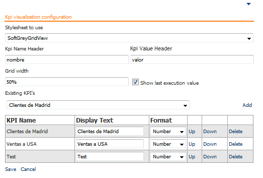 Permite especificar un estilo para la visualización de la información. Tenga en cuenta que en caso de utilizar en la misma pagina un módulo BIZUIT DataService configurado de manera tabular y/o más de un módulo BIZUIT KPI Visualization todos los módulos deben utilizar el mismo estilo, de lo contrario, se utilizará para todos los módulos de la página el estilo aplicado al último módulo visualizado en dicha página. Estos estilos se encuentran ubicados físicamente en el directorio DesktopModules\Bizuit Data Service\GridStyleSheets de la carpeta de instalación de BIZUIT Dashboard y pueden ser modificados por el usuario administrador así como también es posible incorporar nuevos estilos, en cuyo caso será necesario reiniciar el directorio virtual de BIZUIT Dashboard para que los cambios sean aplicados y el nuevo estilo aparezca en la lista desplegable "Prefered stylesheet" |