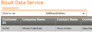 Muestra una lista de estilos predefinidos para la visualización de la información en formato tabular. Tenga en cuenta que en caso de utilizar en la misma pagina un módulo BIZUIT KPI Visualization y/o más de un módulo BIZUIT DataService configurado de manera tabular, todos los módulos deben utilizar el mismo estilo, de lo contrario, se utilizará para todos los módulos de la página el estilo aplicado al último módulo visualizado en dicha página. Estos estilos se encuentran ubicados físicamente en el directorio DesktopModules\Bizuit Data Service\GridStyleSheets de la carpeta de instalación de BIZUIT Dashboard y pueden ser modificados por el usuario administrador así como también es posible incorporar nuevos estilos, en cuyo caso será necesario reiniciar el directorio virtual de BIZUIT Dashboard para que los cambios sean aplicados y el nuevo estilo aparezca en la lista desplegable "Prefered stylesheet" |