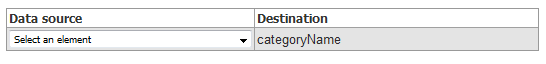 Posteriormente se presenta una tabla de configuración en la que se permite especificar qué datos del módulo llamador serán pasados a los parámetros del módulo llamado. La columna "Destination" muestra los parámetros configurados en el módulo llamado y la columna DataSource permite seleccionar del módulo llamador los datos a pasar a dichos parámetros.