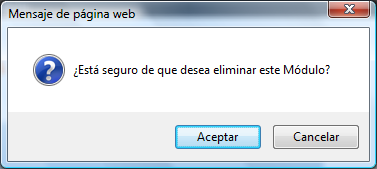 Seleccionando la opción "Eliminar" del menú desplegable aparecerá la siguiente ventana solicitando confirmación de la eliminación: