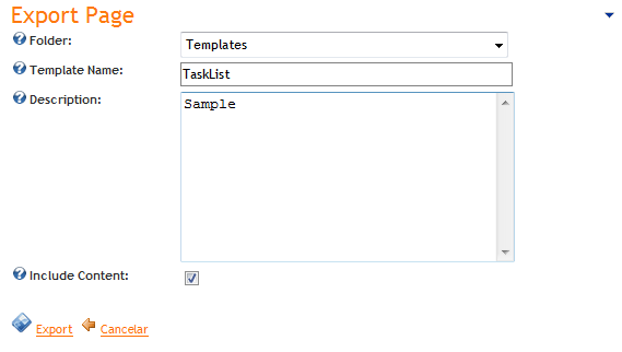 Realiza la exportación. Al hacer clic se nos presentará un mensaje indicando el resultado de la operación y especificando la ubicación física del archivo generado. Ejemplo: The Page Template Has Been Created to C:\inetpub\wwwroot\BizuitDashboard258\Portals\0\Templates/TaskList.page.template |