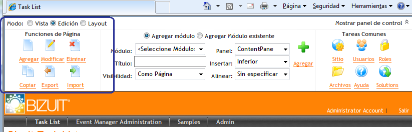 Desde la opción "Modificar" es posible editar los ajustes actuales de la página en la cual nos encontremos.