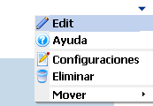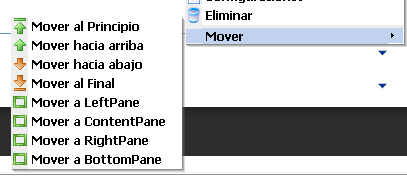 Los módulos disponibles en todas las páginas disponen de un menú desplegable indicado con una flecha hacia abajo que posee opciones de configuración propias del modulo y opciones generales, dentro de las generales encontramos la opción "Mover" que permite colocar el módulo en los distintos paneles con los que cuenta la página.
