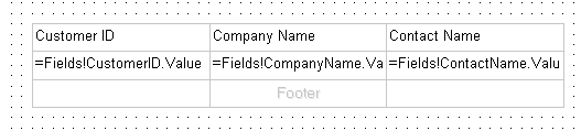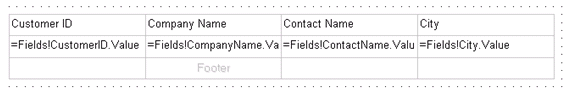 Para definir los datos que se visualizarán en la tabla arrastrars los campos del origen de datos a las celdas Detail de la tabla, a