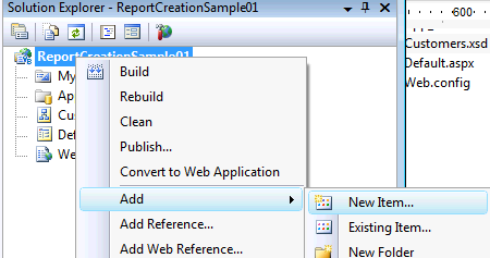 Una vez creado el proyecto, y creado un origen de datos a utilizar en el reporte, se debe agregar al proyecto el reporte a generar.