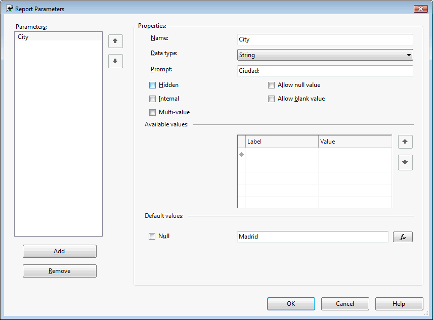 Etiqueta que se mostrará en la visualización del módulo BIZUIT Report solicitando al usuario el ingreso del parámetro.