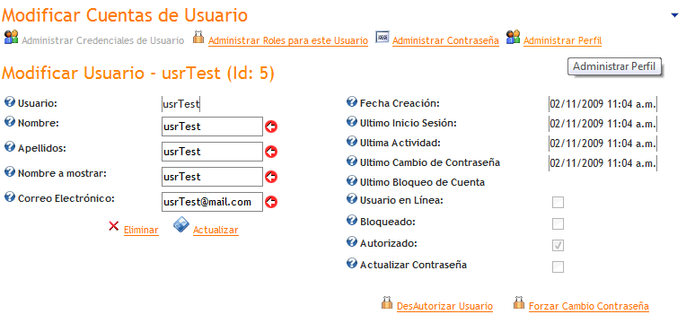 Seleccionar la opción "Administrar Perfil":