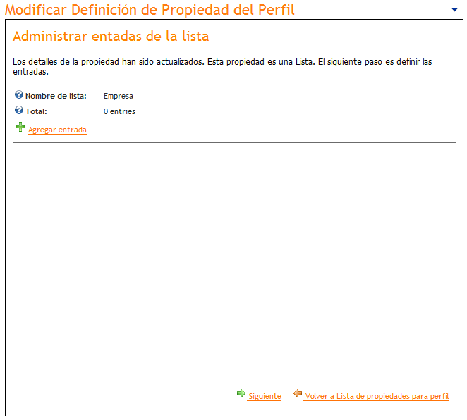 Al hacer clic en "Siguiente" es posible agregar entradas a la lista "Empresa" recientemente creada: