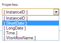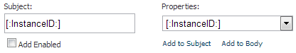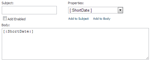 Permite, mediante una lista desplegable, elegir la propiedad que se quiere añadir al campo Subject o Body.