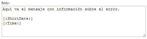 Permite introducir, mediante un área de texto, el cuerpo del mensaje de error.
