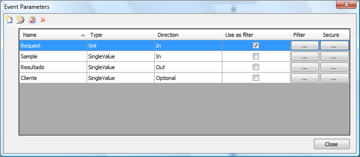 Permite indicar si el parámetro podrá ser utilizado para filtrar instancias del evento por el contenido del mismo. Ver Parámetros Filtrables |