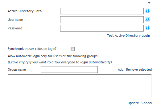 Permite indicar la ruta al dominio Active Directory (AD) para acceder a roles y usuarios. Por ejemplo, si el dominio en el cual se encuentra el servidor fuese MyCompany.com, debería ingresar la ruta de la siguiente manera: LDAP://DC=MYCOMPANY;DC=COM Esta configuración puede variar en función de los seteos de su dominio para lo cual es probable que deba contactar al administrador del dominio de su empresa. |