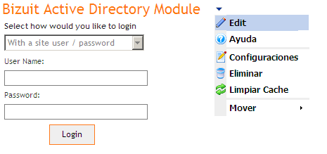 Una vez agregado el módulo a la página se debe proceder a realizar su configuración seleccionando la opción "Edit" del menú desplegable:
